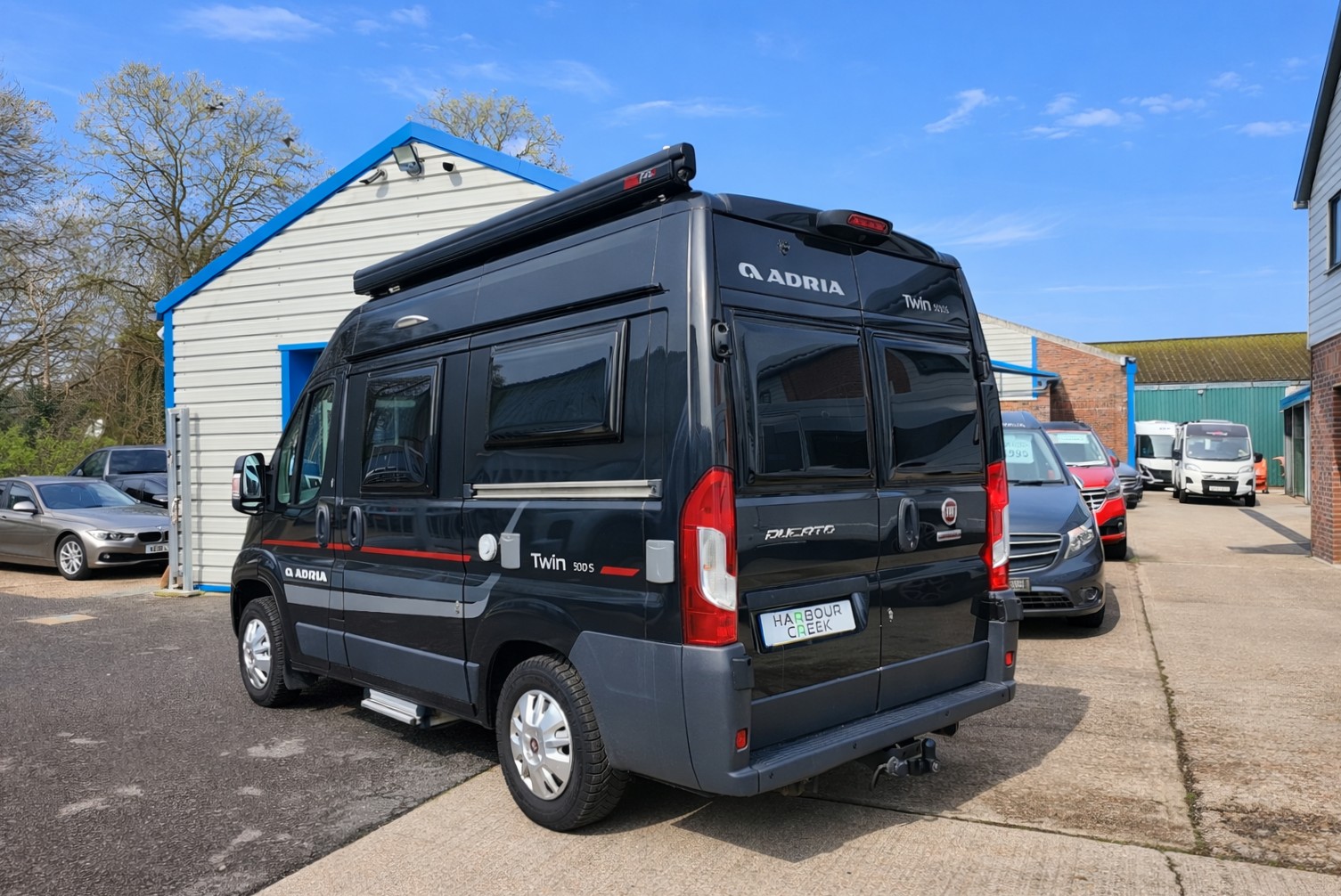 At Harbour Creek we are delighted to present this fantastic 2017 Adria Twin 500 S Compact, 2-berth Campervan that is under 5m long. Built on the Fiat Ducato with a 2.3-litre 130bhp engine. 2x berth & 4x travelling seats, the layout consists of two longitudinal single beds that are converted from the midships lounge and rear travel seats.