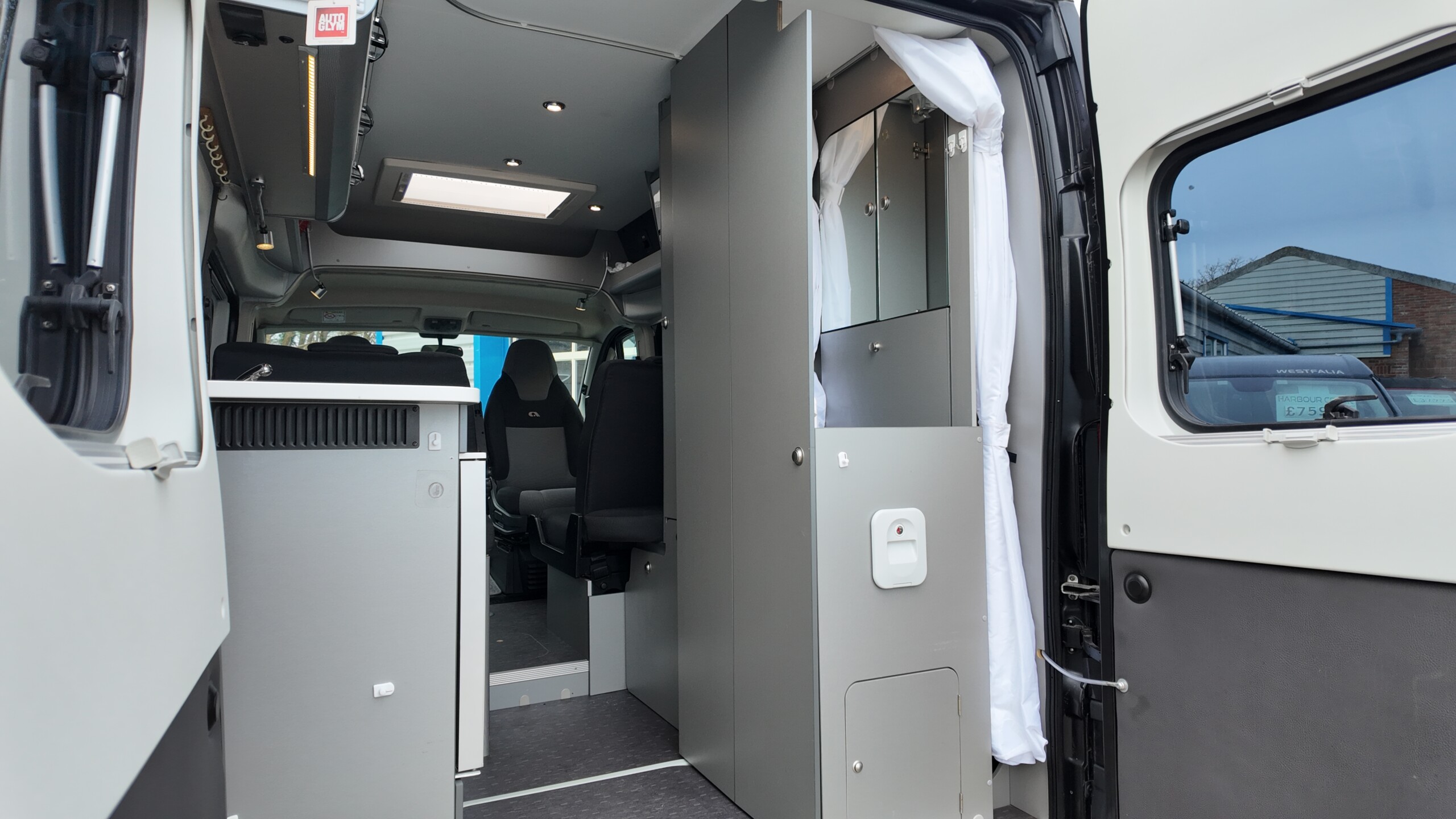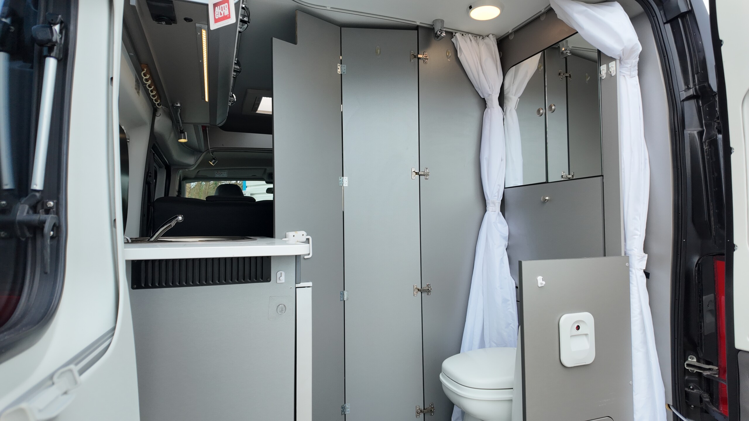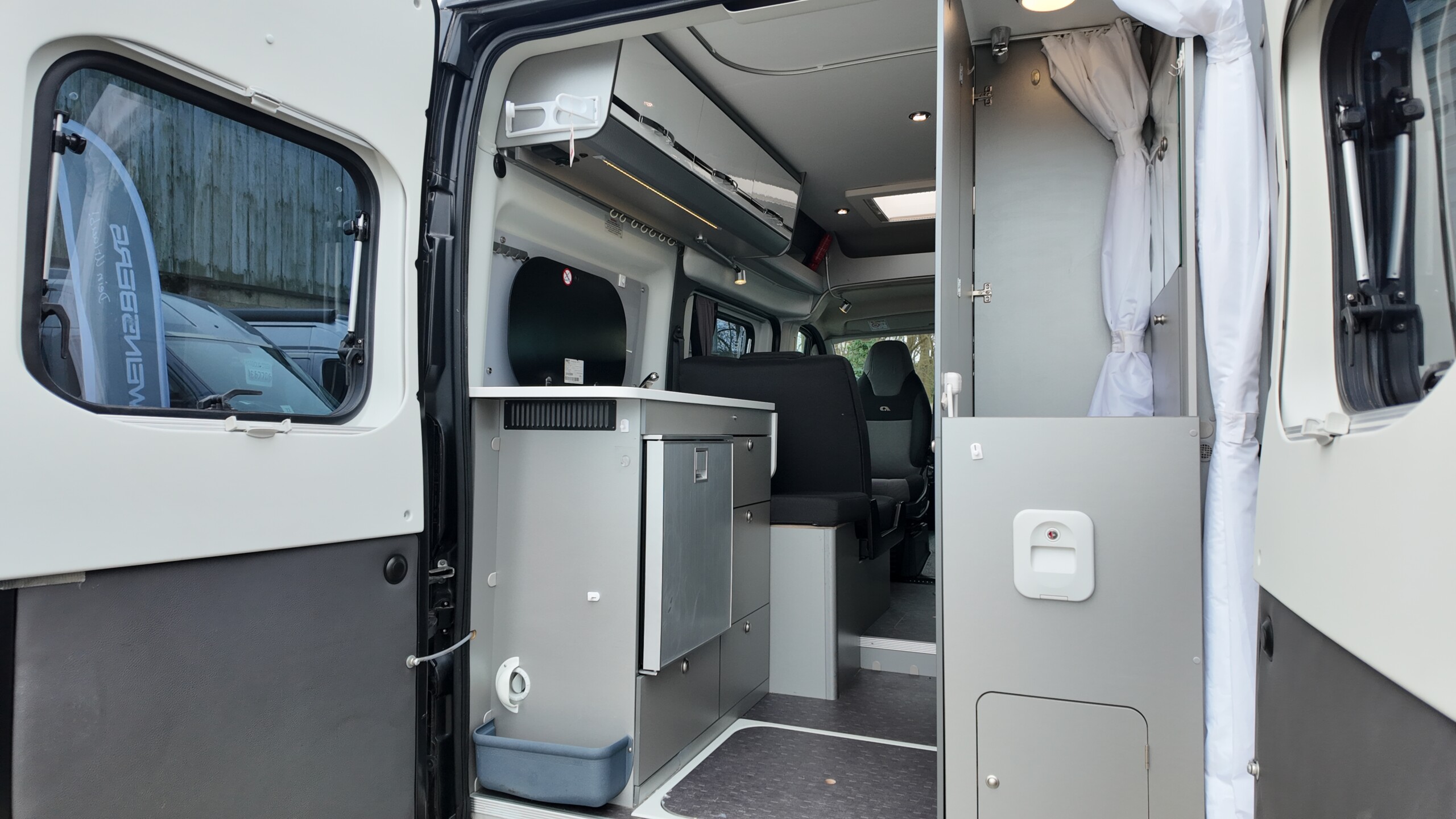 Because the beds run along the sides of the van the central aisle remains clear, providing unobstructed night-time access to the kitchen and washroom without disturbing your partner.