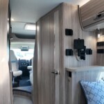This CV40 has a spacious rear lounge with parallel seats that make into a double bed, the barn doors open up for alfresco dining! To the front there is a pull-man style lounge that makes into single guest bed if required. The front travel seats form a great dinette area, joined by the swivel cab seats.