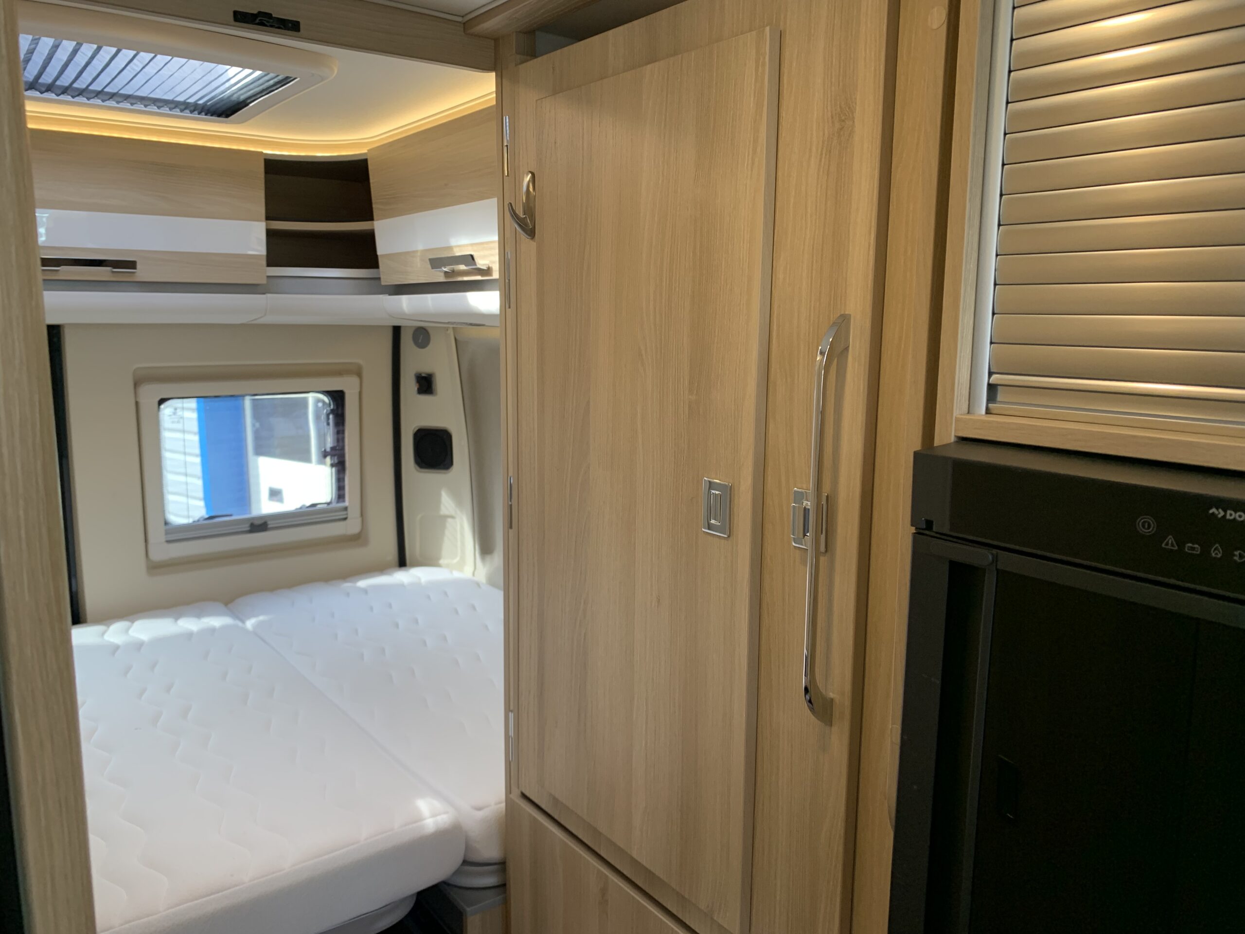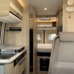 This D55 Select model has the traditional layout with the fixed bed at the rear and also has the option of a front dinette bed conversion, overall sleeps 3 comfortably.