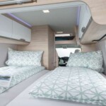 This popular choice of layout due to being so versatile at just 6m long – Featuring spacious longitudinal rear beds, having the option of a large double or two single beds.