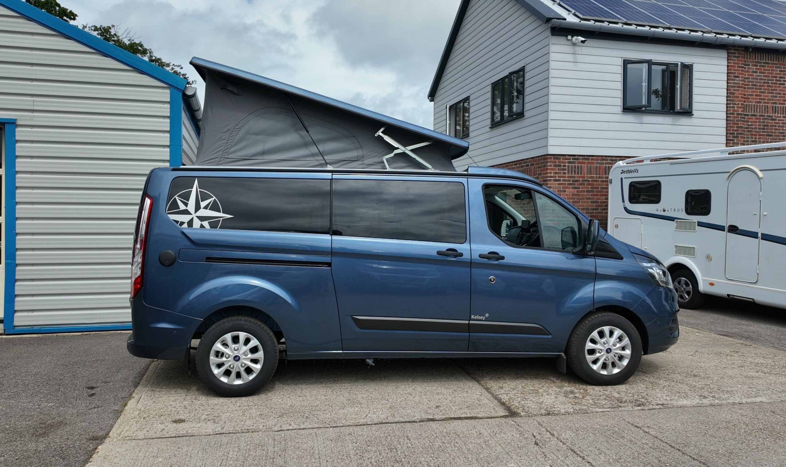 Introducing this Fantastic Pre-owned 2025 (74) plate Westfalia Kelsey, based on a Ford Transit Custom chassis, 2.0l EcoBlue Automatic gearbox, Metallic Azur Blue.