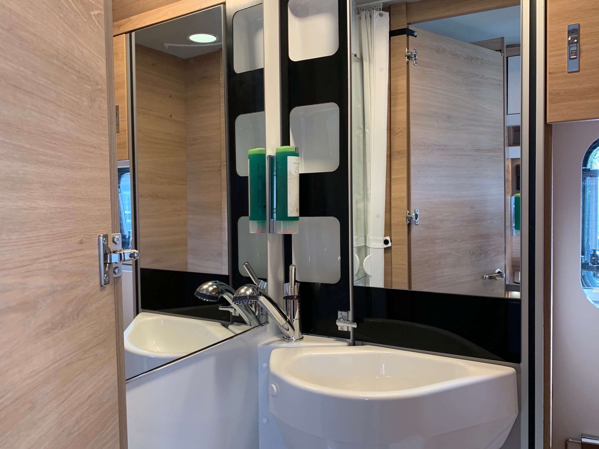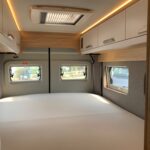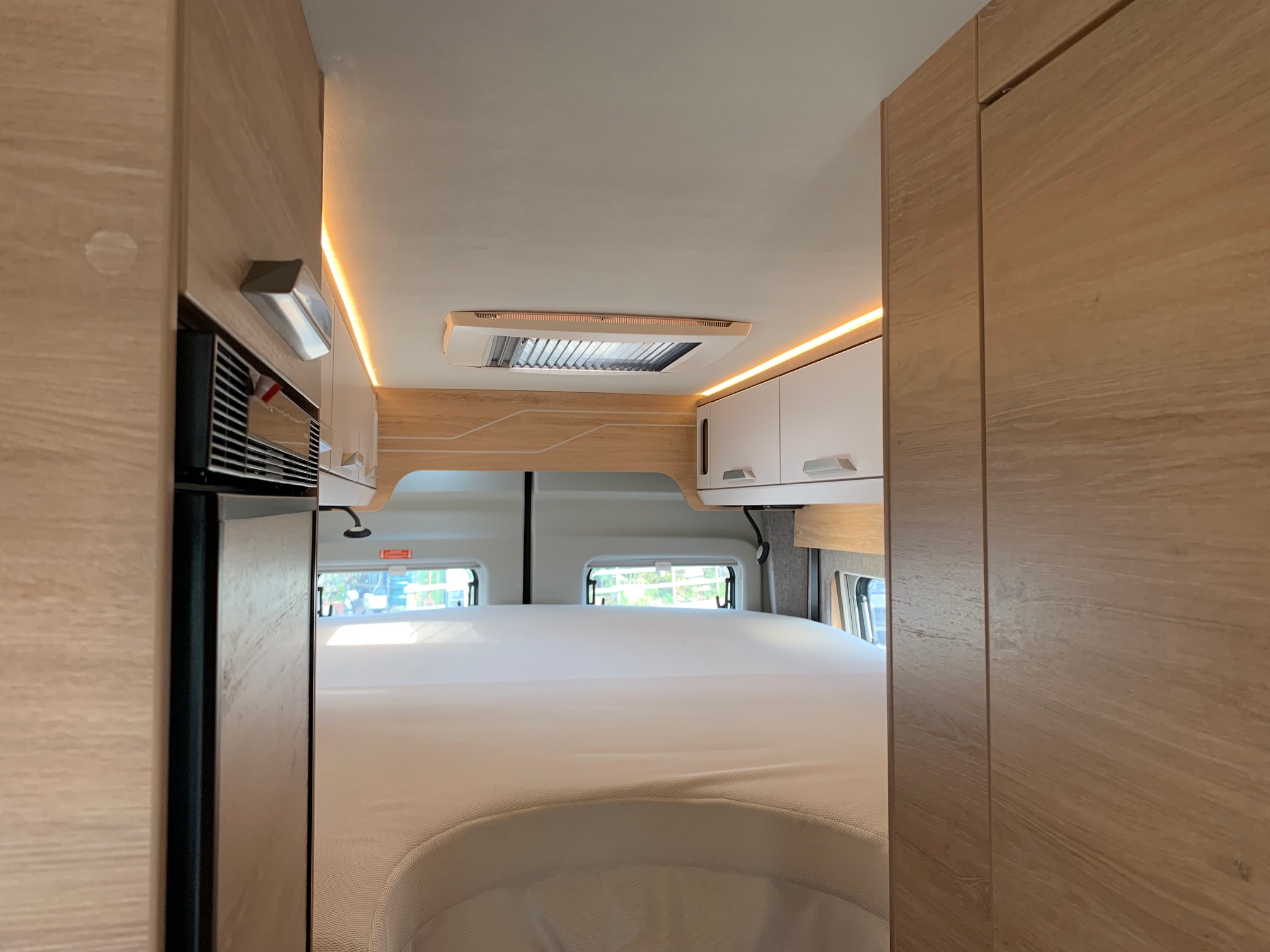 The rear longitudinal lifting bed, this gives you the additional, flexible storage space for large luggage, bicycles, e-bikes or other sports equipment under the two comfortable beds.
