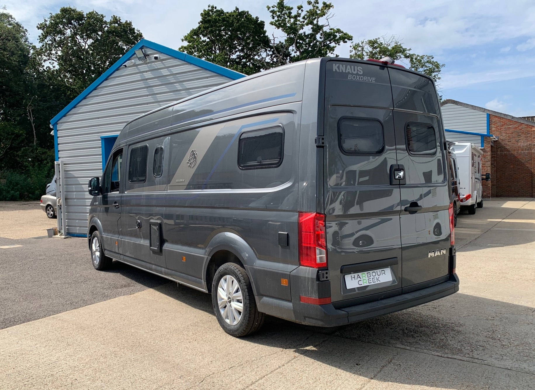 New 2024 Knaus Boxdrive 680 ME Motorhome, Based on MAN TGE chassis, Euro 6D, 2.0l, TDi 170Hp/130kW with an Automatic gearbox. 3x Berth & 4x Travelling Seats. Finished in Metallic Indium Grey. Vehicle Reference: 0282