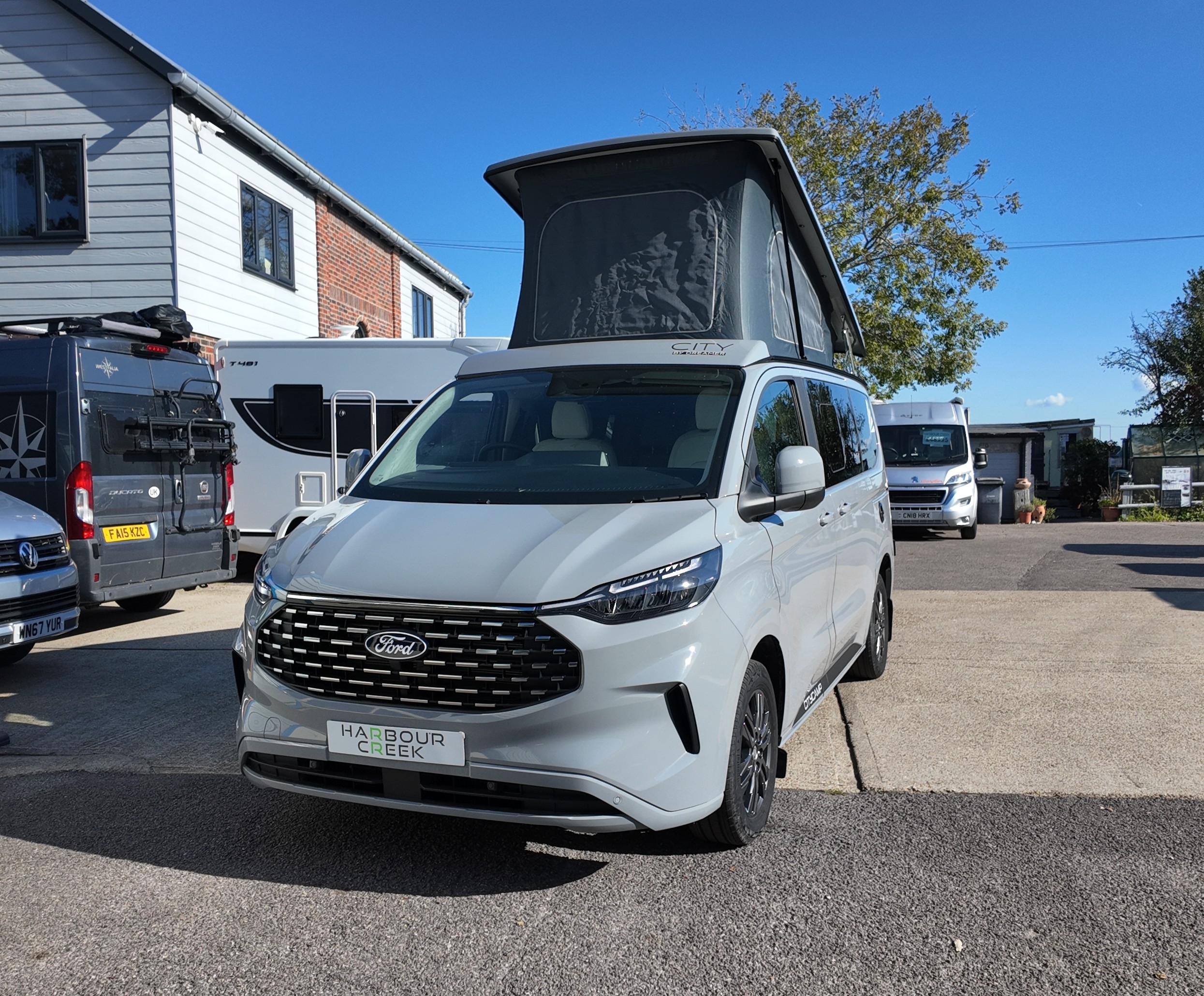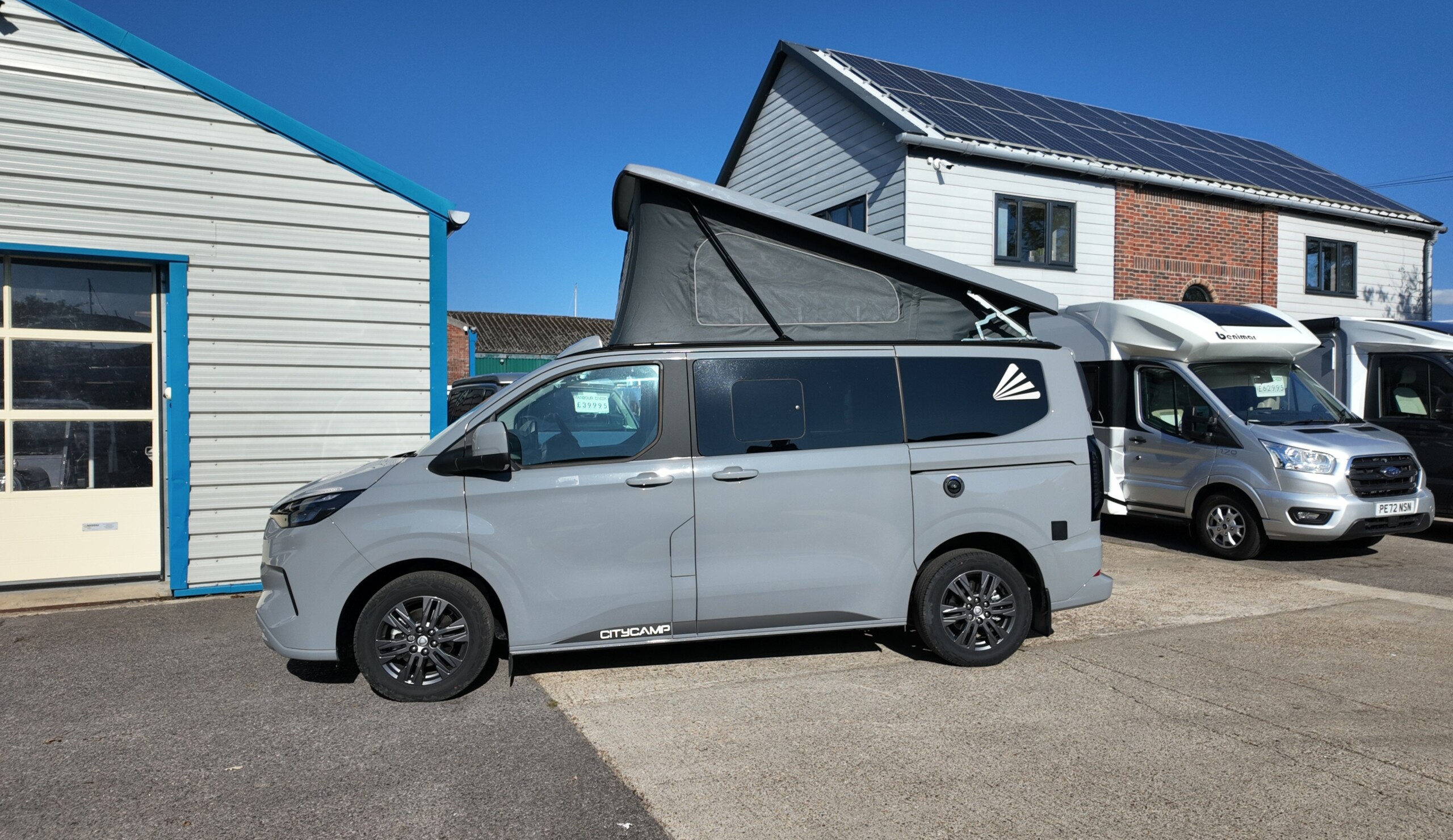 NEW 2025 City Camp Select by Dreamer. Grey Matter Metallic. New Ford Custom chassis. 2.0L, 170Hp Automatic gearbox. 3.2 t. Belted travelling seats for up to 5 people and sleeps 4. Vehicle Reference: 7709