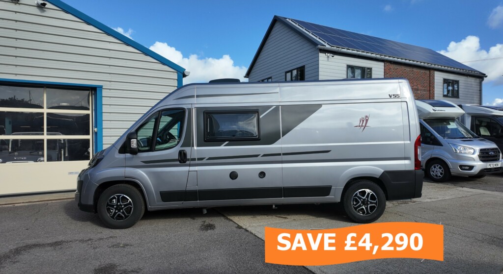 SPRING SPECIAL! – SAVE OVER £4,000! Was £79,270.00 Now £74,980.00! NEW Rapido V55 Campervan, Artense Grey Metallic -140Hp Automatic Gearbox. 2x Berth & 4 Travelling Seats. Rear Transverse Double Bed REF: 6970