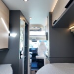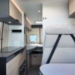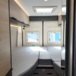 This popular layout offers two single beds at the rear, which can also be made up into a large King size bed. The front dinette can be converted into a single bed creating a 3rd berth. Vehicle reference: 2614