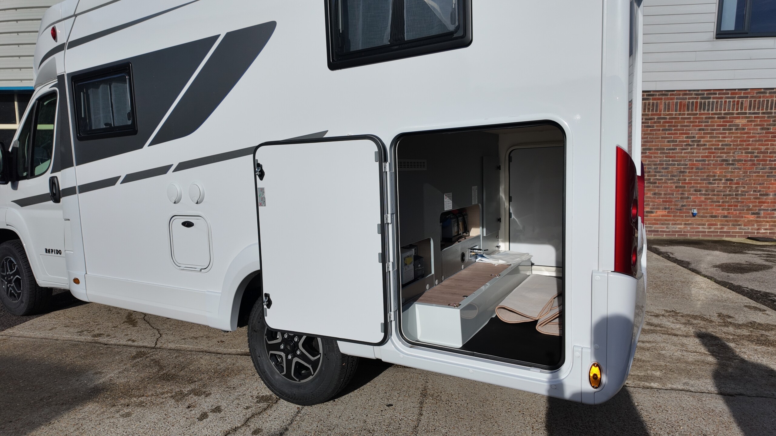 - Large storage space hatches on right 100 x 75 cm and left 100 x 50 cm