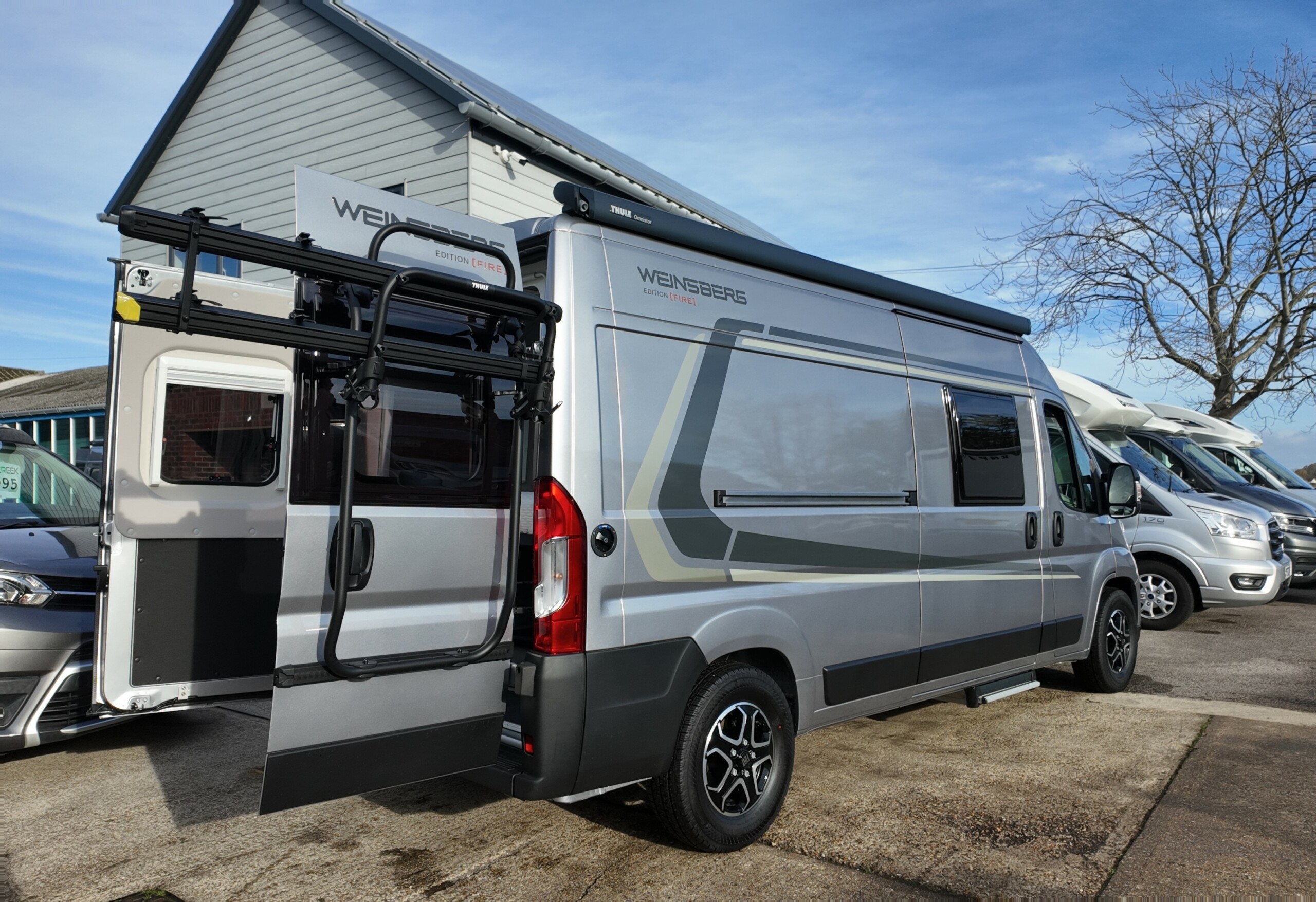 NEW 2026 Weinsberg CaraBus 600 MQ FIRE EDITION Motorhome, Artense Grey Metallic. Based on a Fiat Ducato Chassis. 140Hp with an 8-speed automatic gearbox. Rear transverse double bed & lounge bed conversion for one. 3x Berth & 4x Travelling seats.