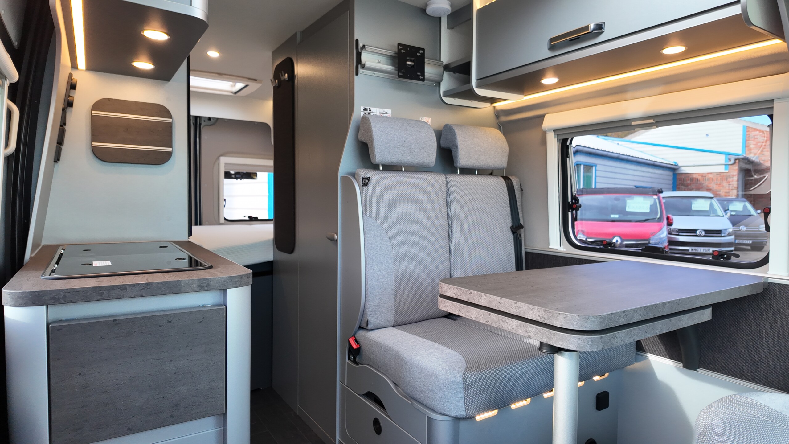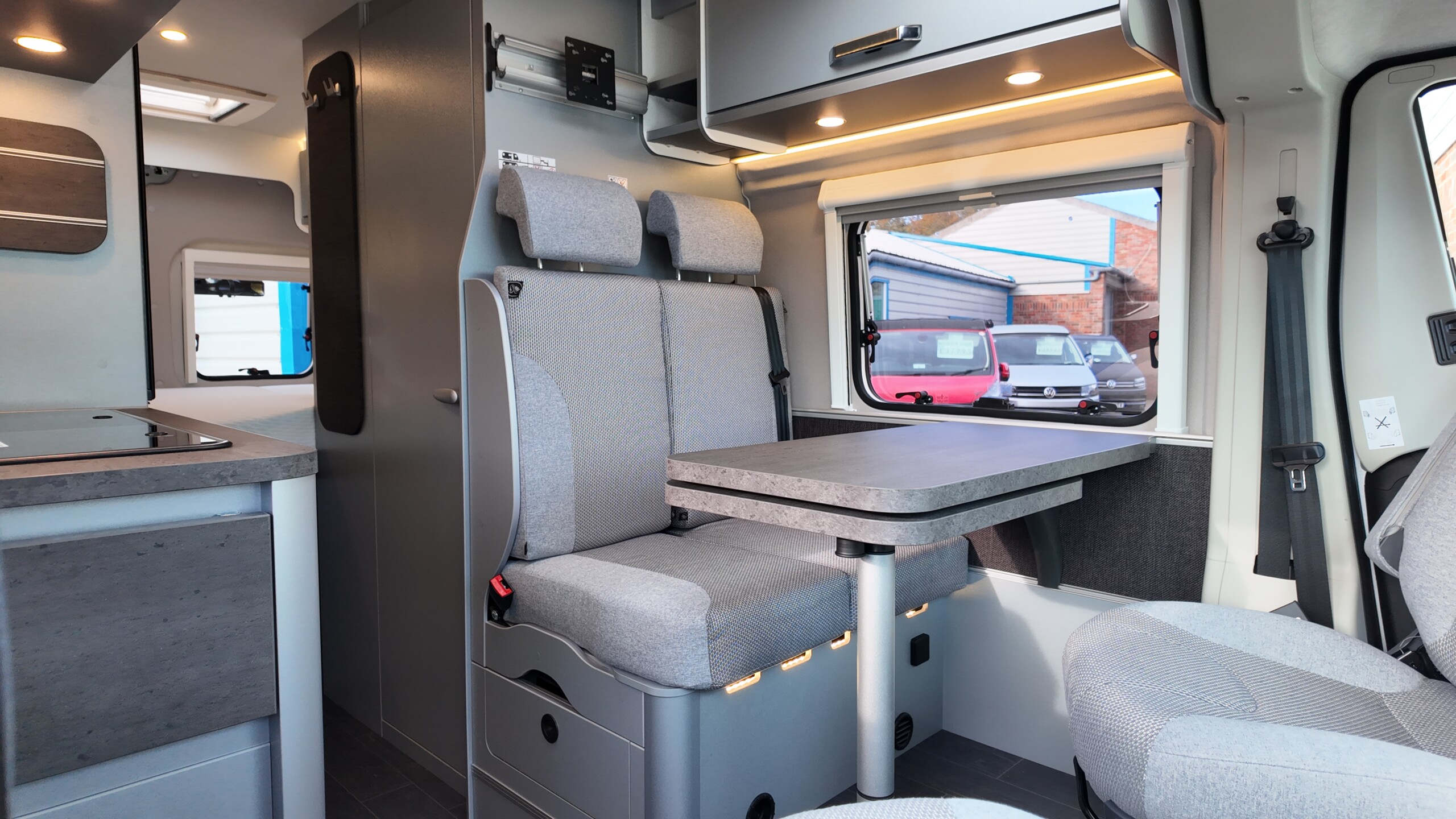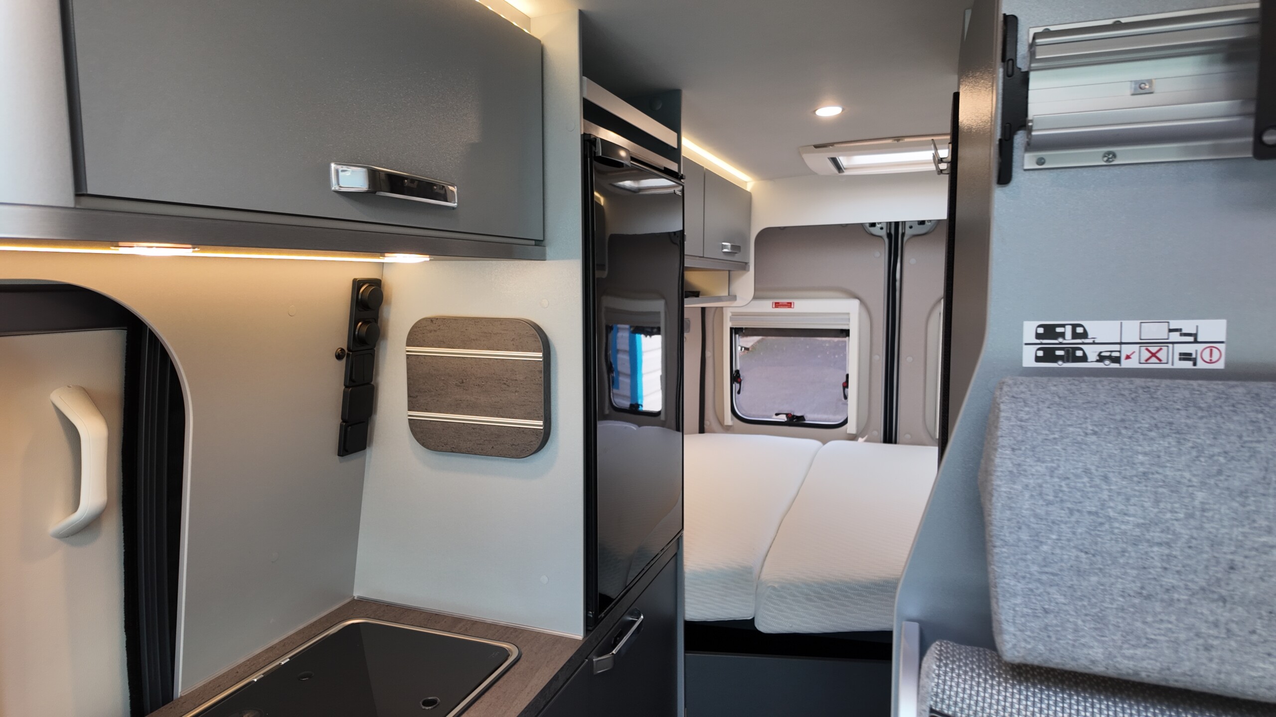 The interior boasts a contemporary grey design – with high‐quality, durable CPL surfaces. Compact, well thought‐out, ready to travel – all at a price as convincing as the equipment: The CaraBus GREY EDITION [FIRE] has everything you need for your next adventure!