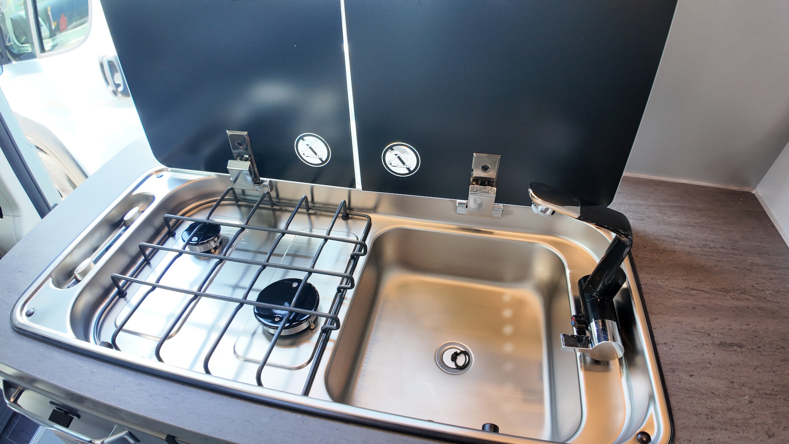 - Cooker-sink combination incl. 2-burner cooker with electric ignition and divided glass cover