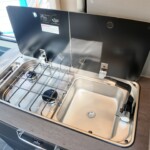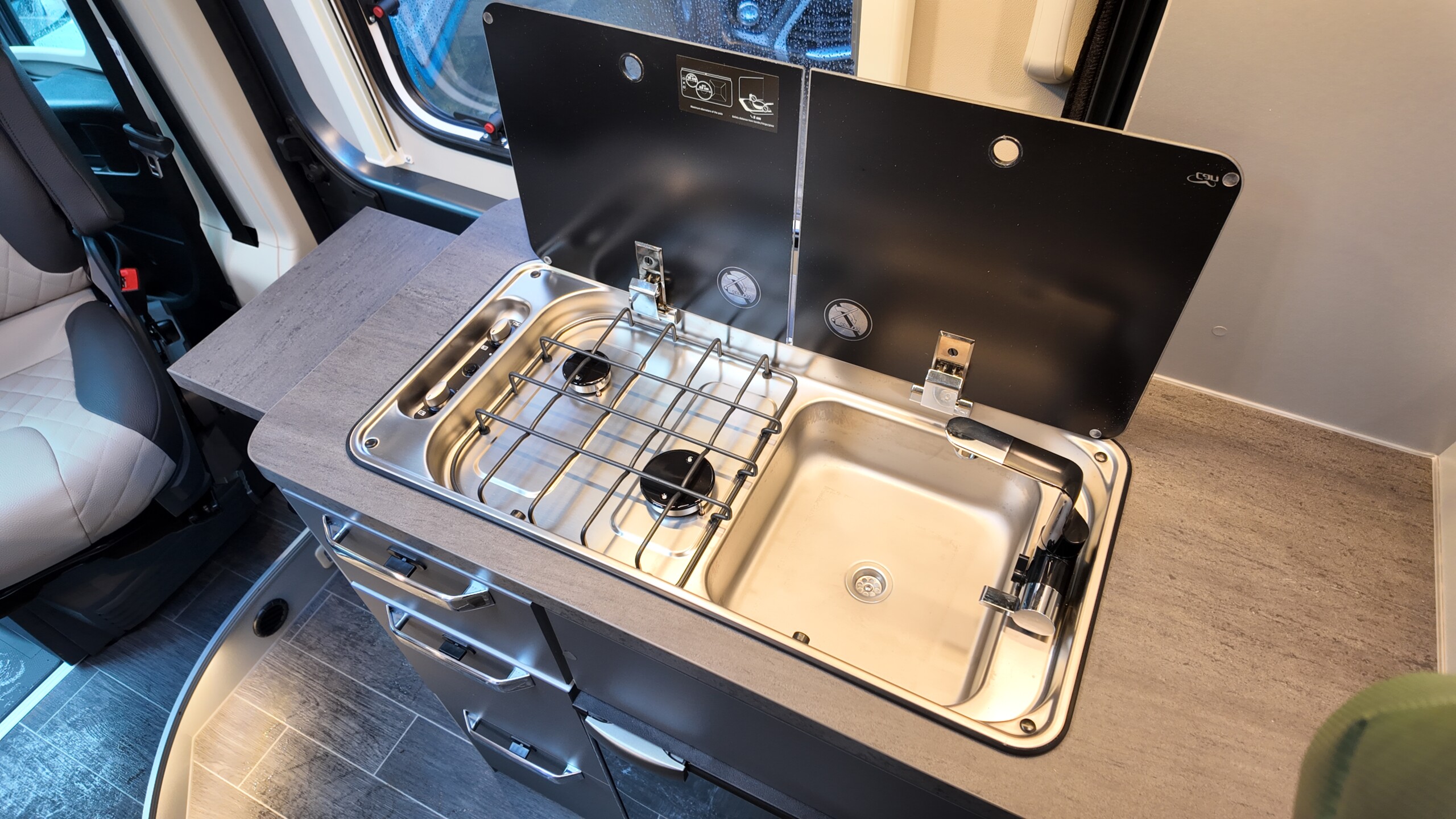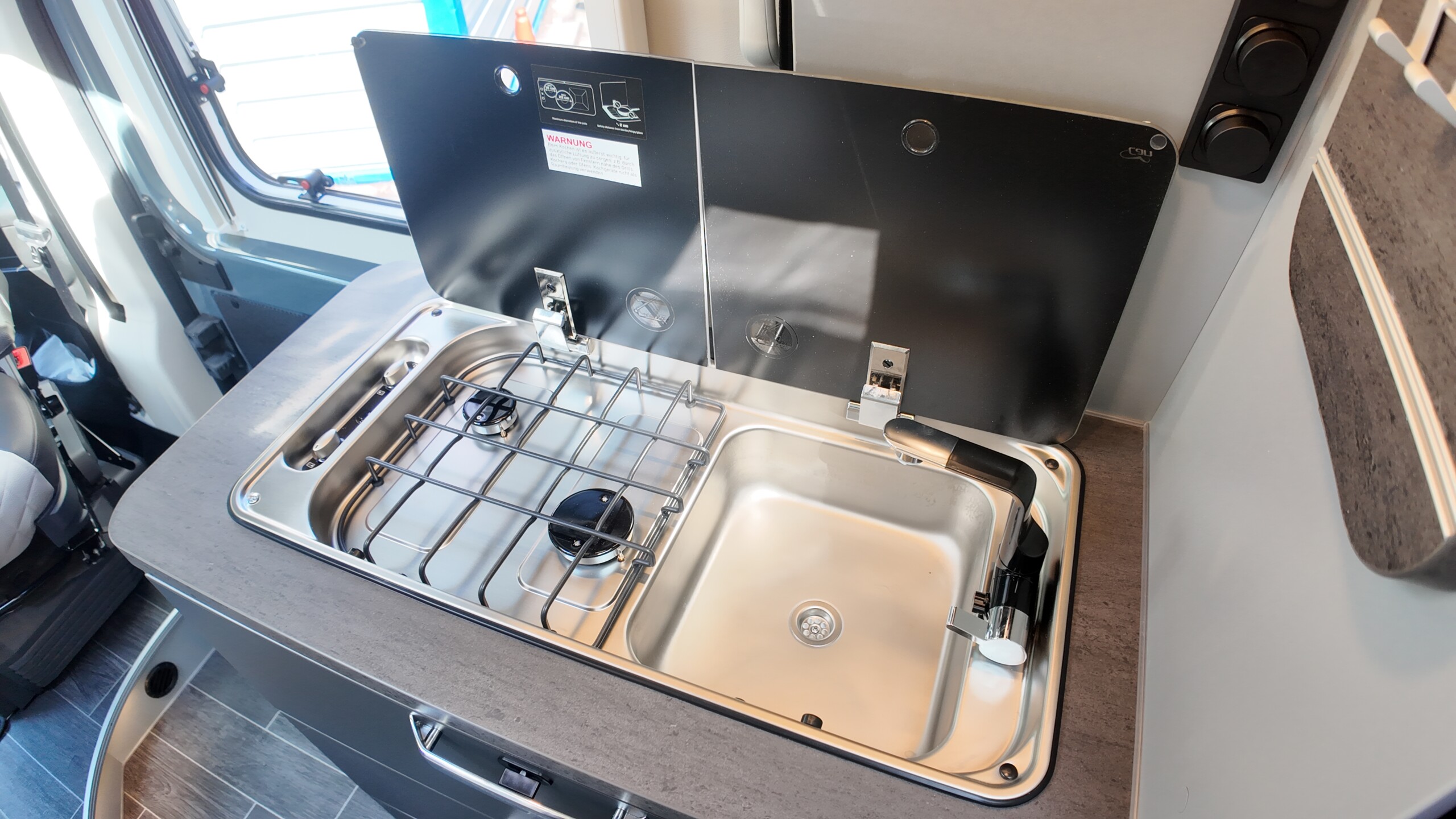 - Cooker-sink combination incl. 2-burner cooker with electric ignition and divided glass cover