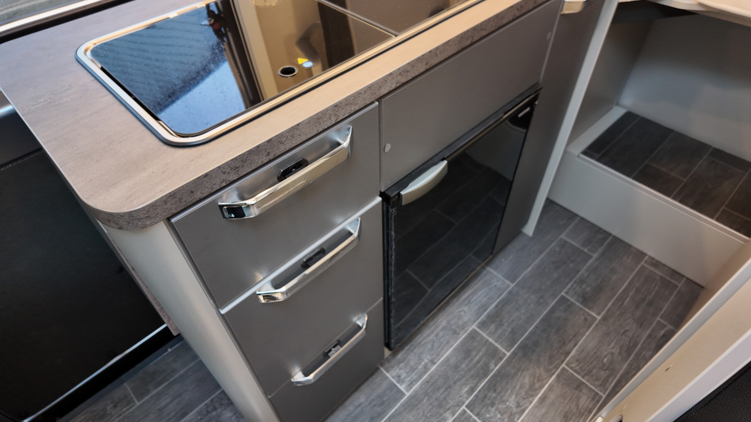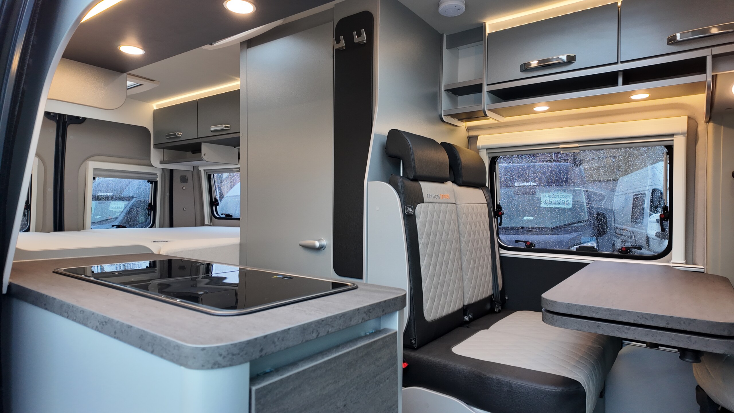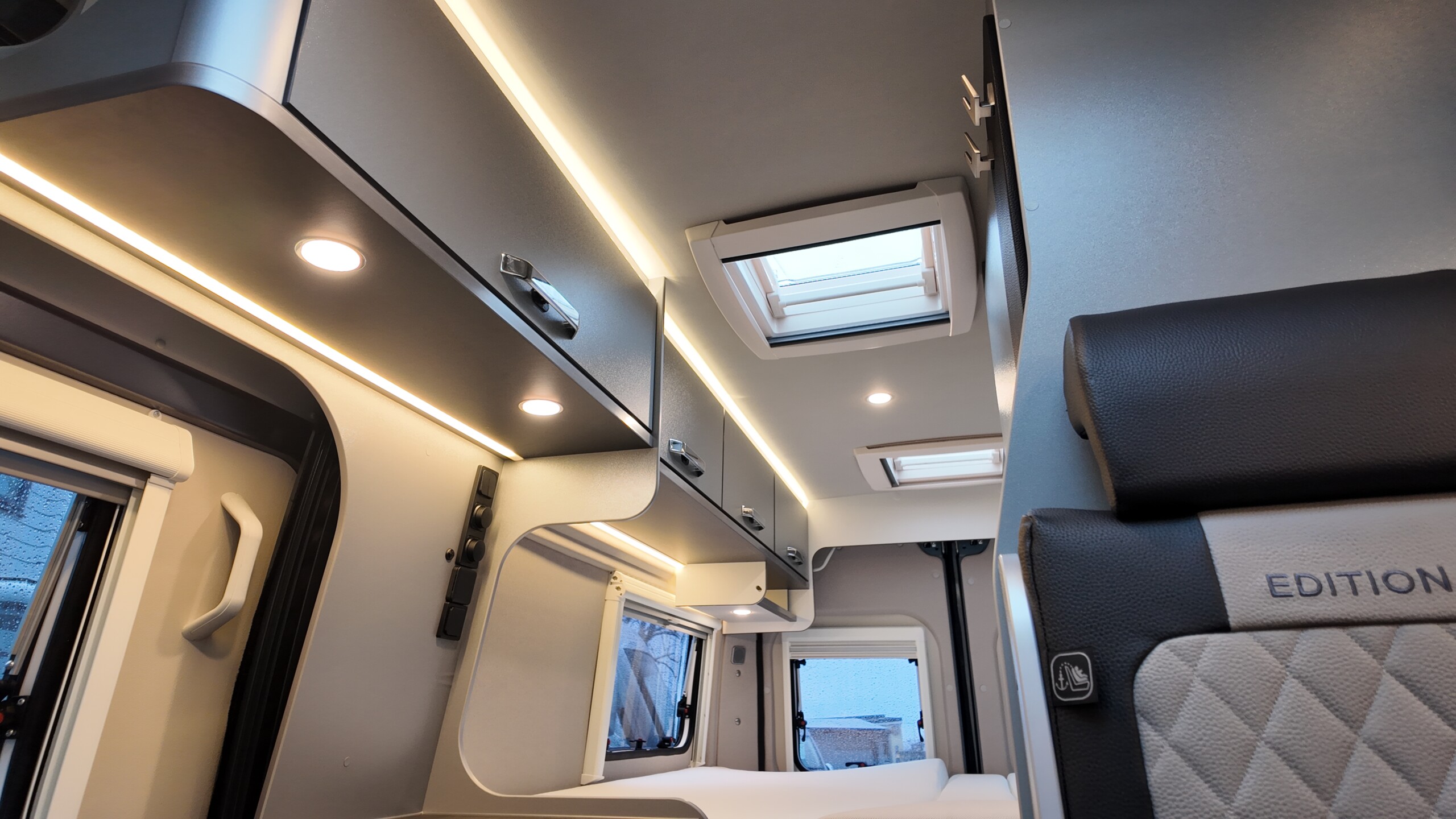 The interior boasts a contemporary grey design – with high‐quality, durable CPL surfaces. Compact, well thought‐out, ready to travel – all at a price as convincing as the equipment: The CaraBus GREY EDITION [FIRE] has everything you need for your next adventure!