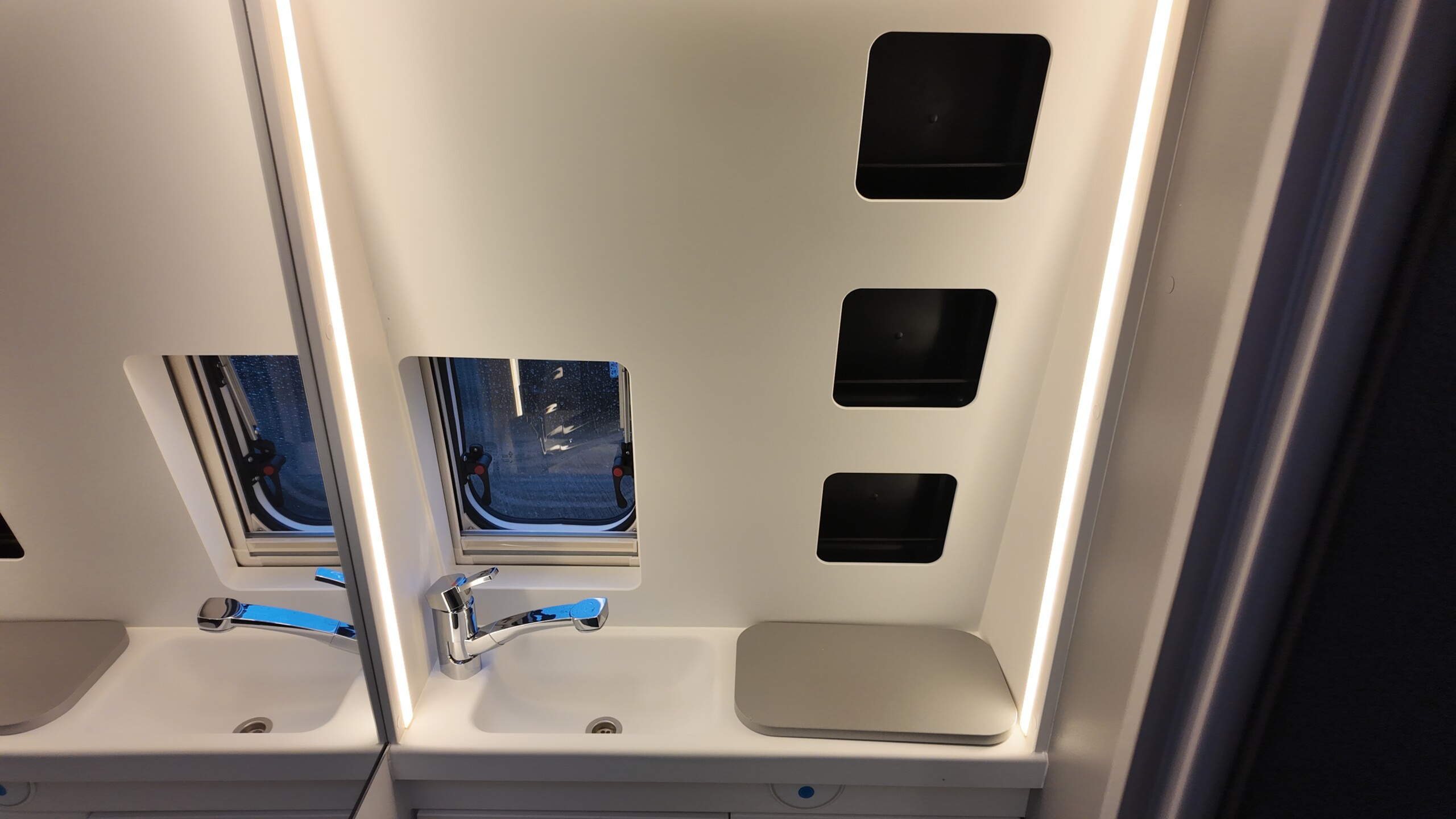 - Hinged window, rear right (with insect screen and blackout)