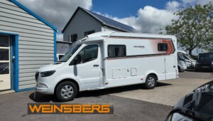 The Weinsberg CaraCompact 640 MEG Pepper Edition is a luxury low-profile motorhome based on the Mercedes-Benz Sprinter chassis, designed to blend high-end driving dynamics with a compact, 7-meter footprint. As a “Pepper” edition, it is known for being a well-equipped and built for a refined driving experience, this model leverages Mercedes-Benz engineering for safety and comfort.