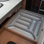 - 2-burner cooker with glass cover, stainless steel sink, recessed