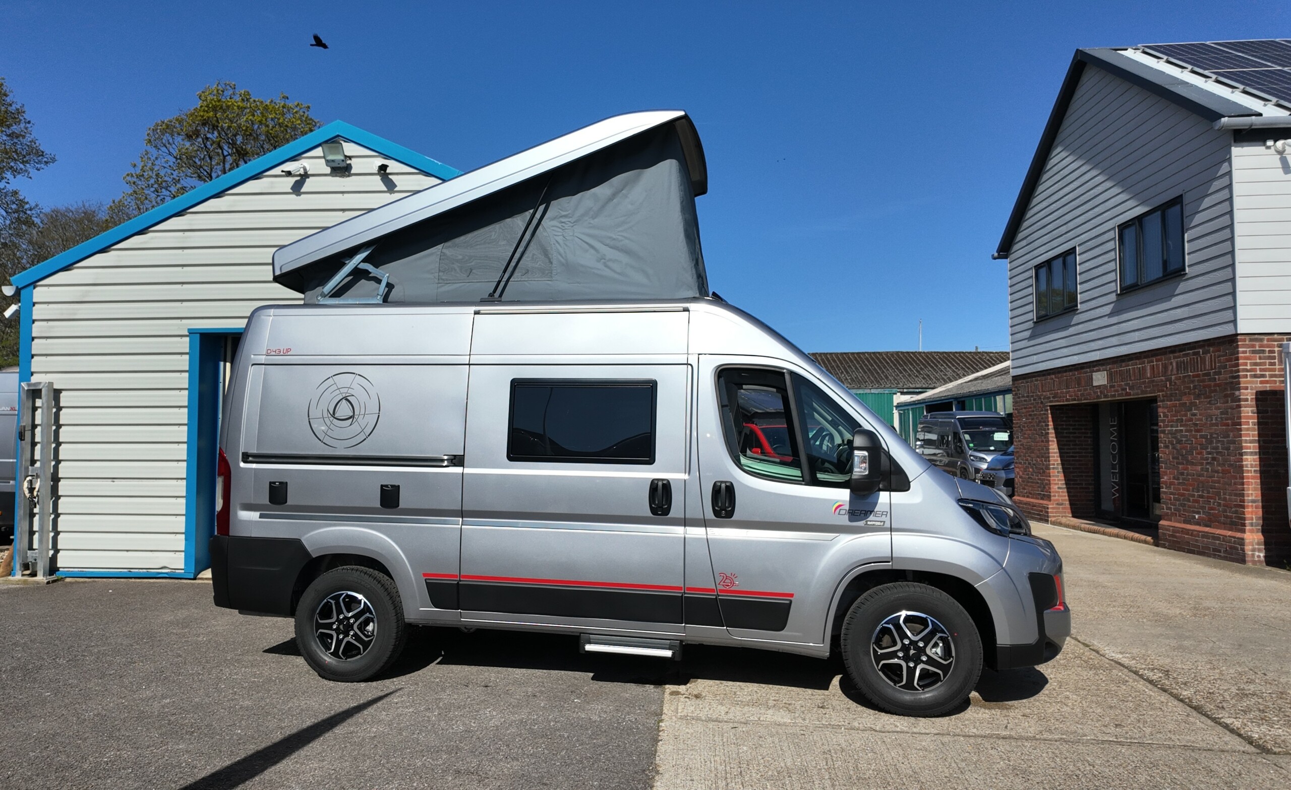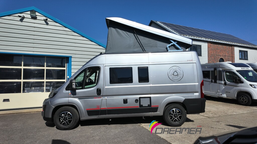 The Dreamer D43 UP Select is a premium, compact campervan celebrating the brand’s 20 anniversary. It stands out as the only medium-wheelbase model in the Dreamer Select range to feature a pop-top roof, combining high-end “Select” trim with family-friendly sleeping capacity.