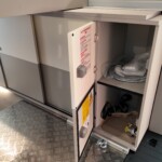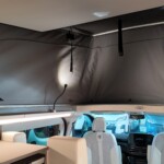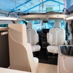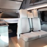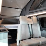 In the lounge, the two travel seats are used for dining around the table along with the swivel cab seats.