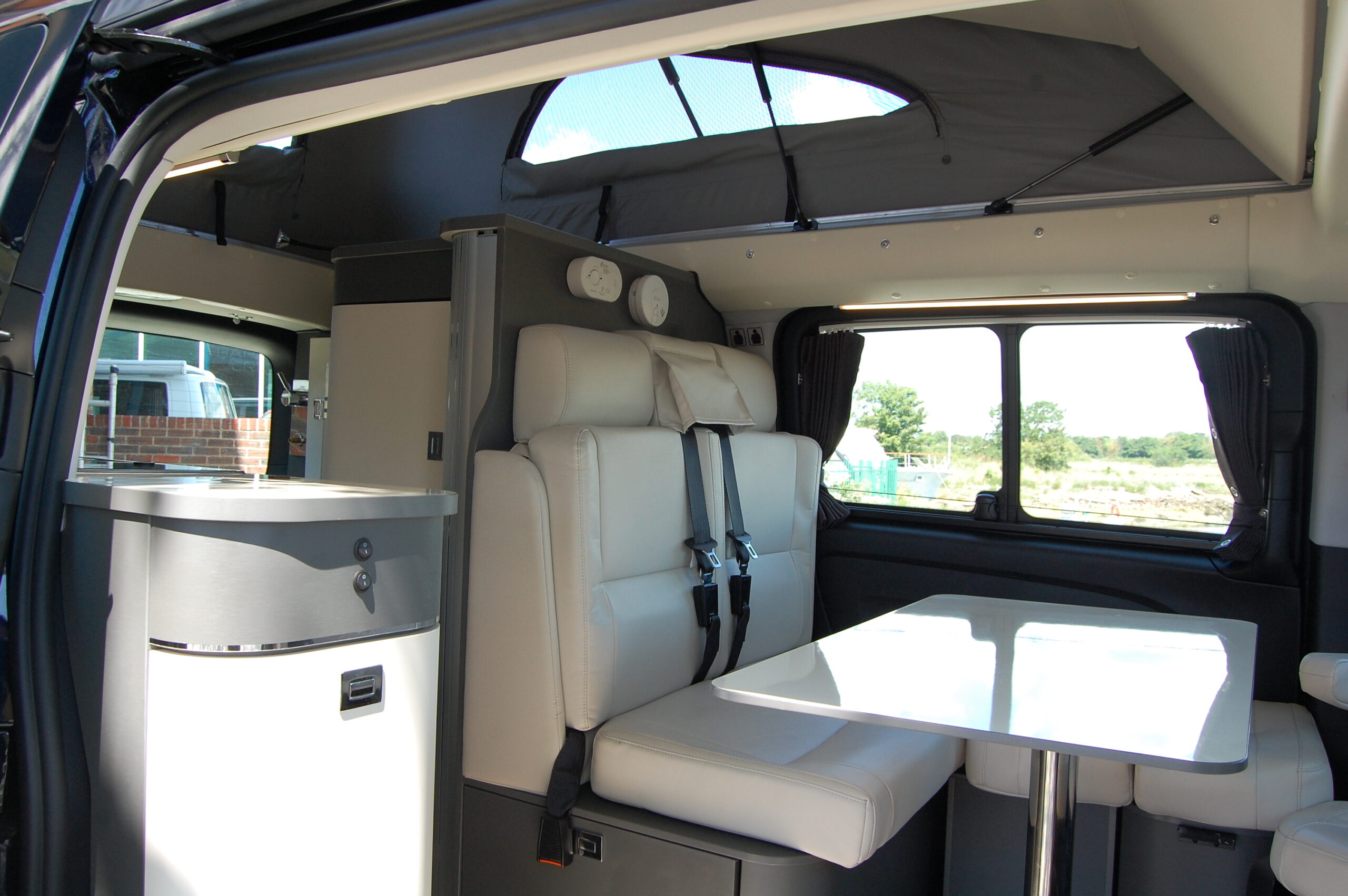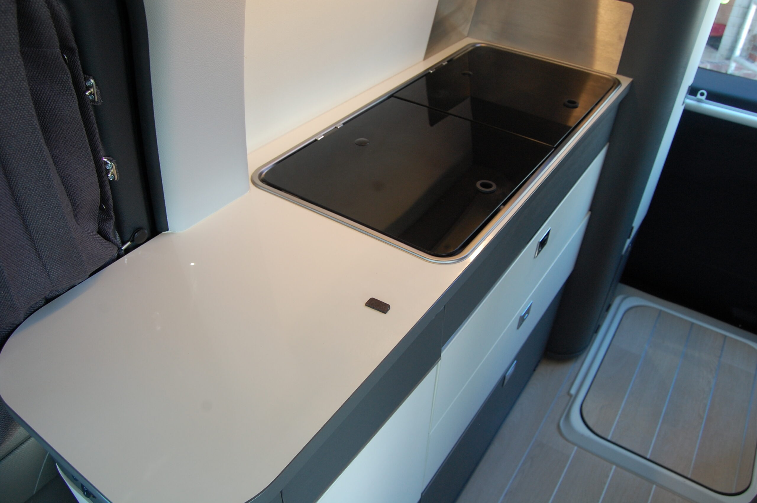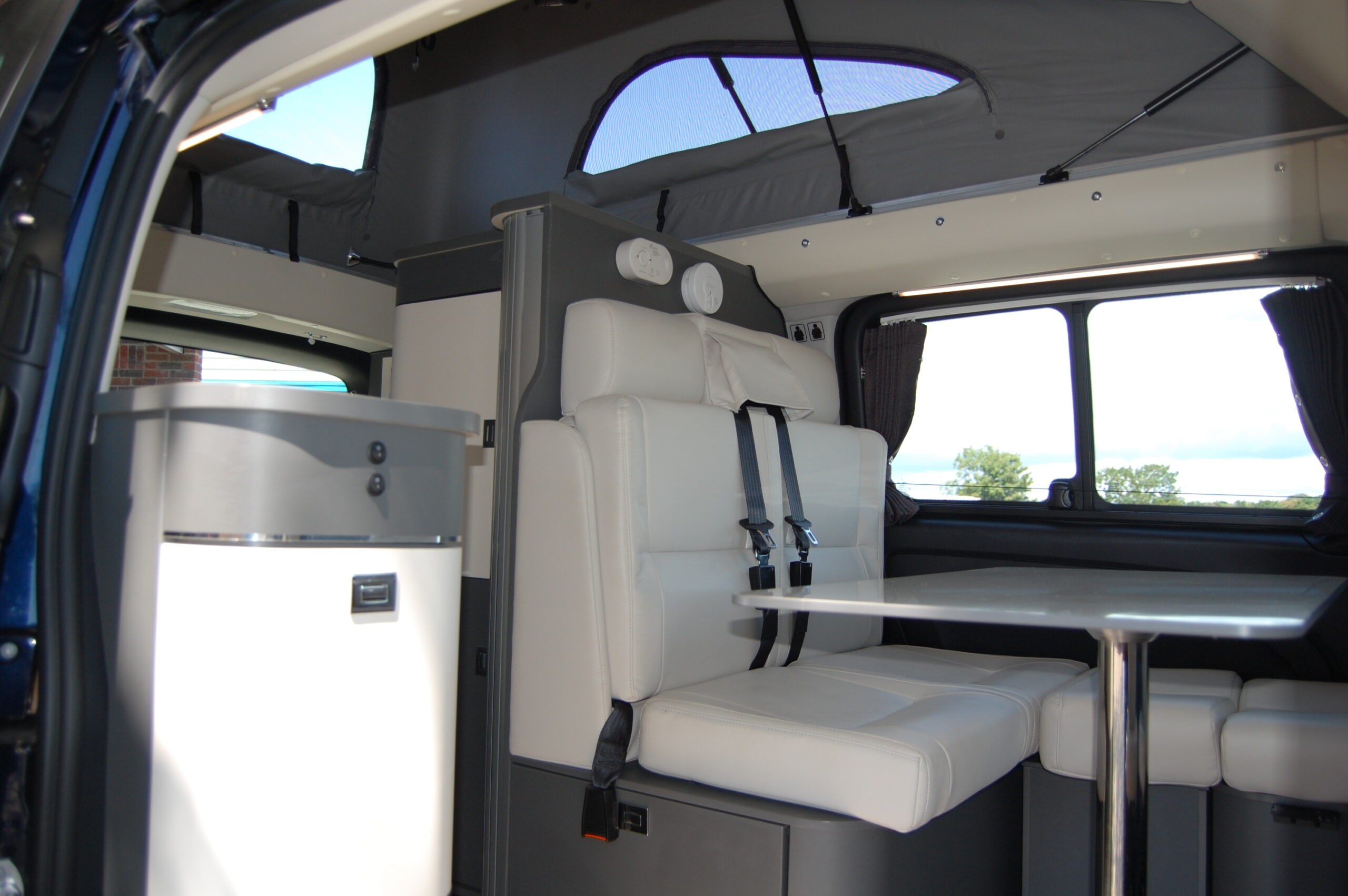 The main living room has an L-shaped lounge which is unique to Westfalia and allows you to sit back and enjoy the view whatever the weather. You will be truly surprised by the amount of space Westfalia have managed to create in this compact campervan, this allows you to use this vehicle as an everyday mode of transport being that it’s under 2 metres high and will fit in any normal car parking space.